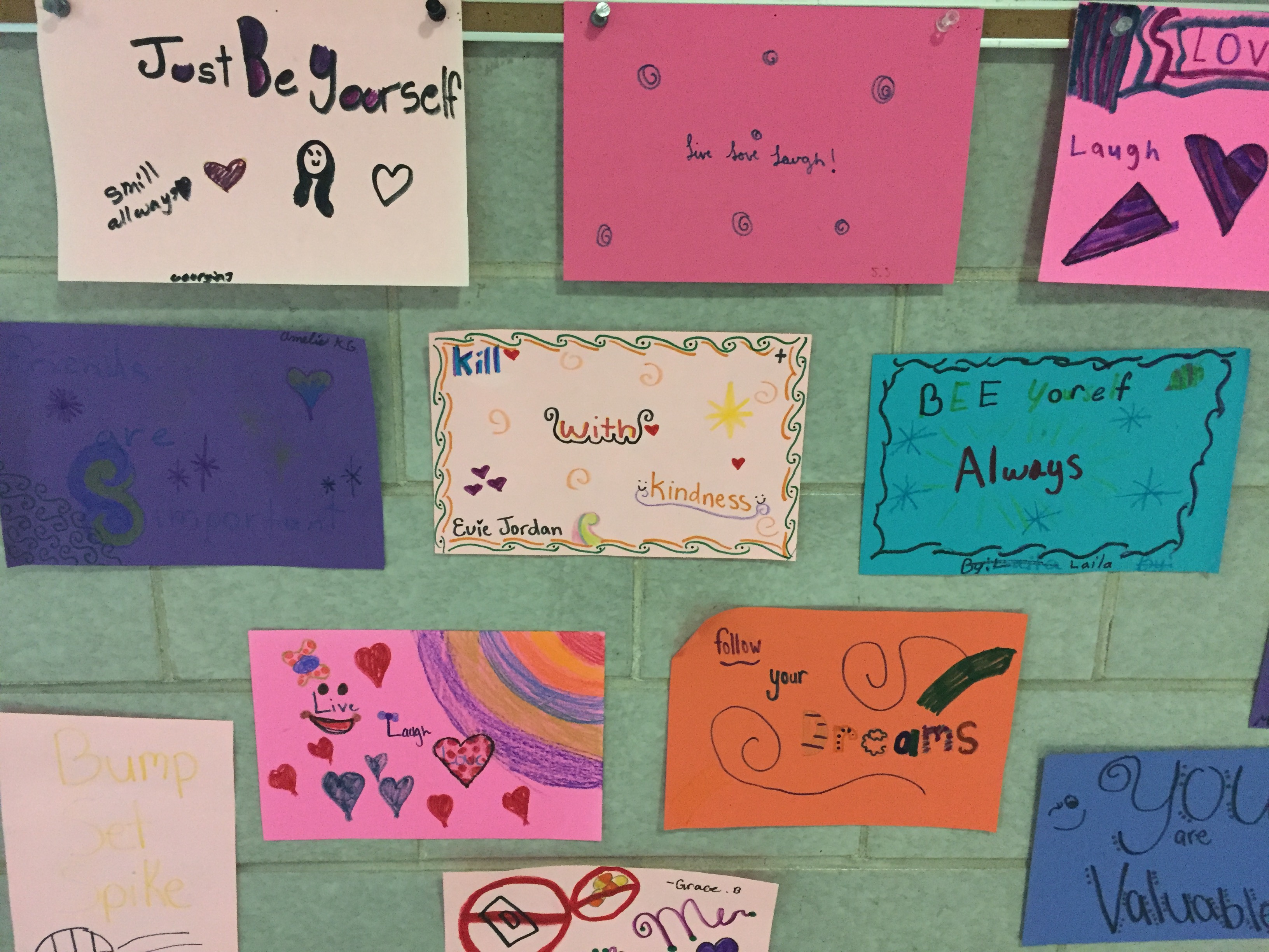 The next Lunch Bunch activity I want to share with you all comes from JYJ Counselor Blog {link here}. Each student is given a piece of construction paper and is instructed to come up with a 3 words phrase that has meaning to her or that are words to live by. The girls came up with some great 3 word phrases, and they enjoyed this activity so much that many of them asked to make more than one!