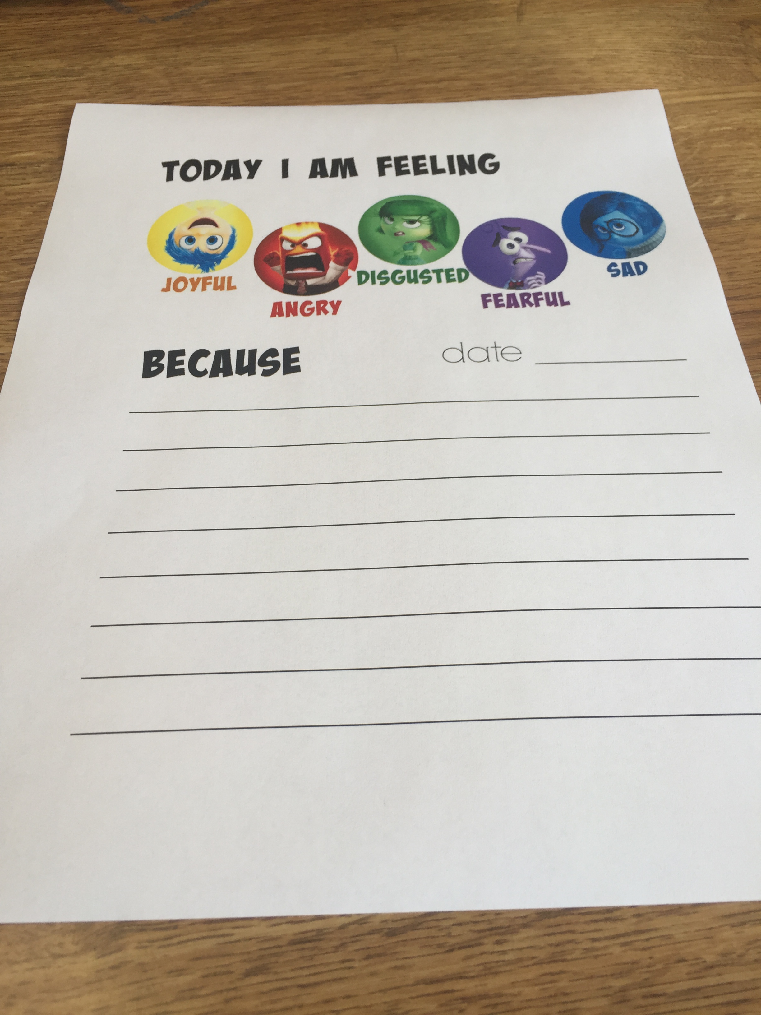 I start every group I run with at least a quick verbal check in, but for my 3rd and 4th grade FIT groups, I decided to use this Inside Out feelings sheet from Brie Brie Blooms: