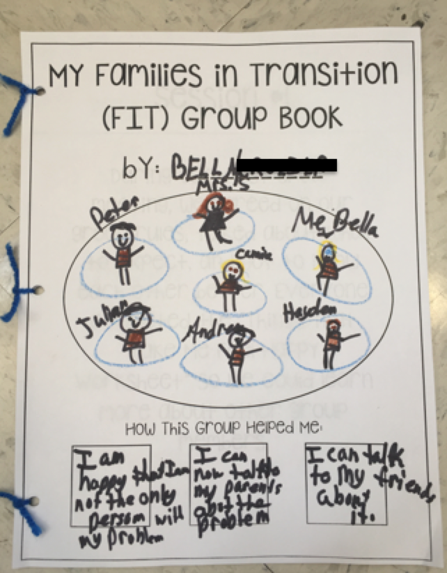 The group members decorate a book cover, complete with a hand drawn picture of the group and 3 ways the group helped them. Then, we punch holes in the pages, and tie them together with yarn. We finish out with a discussion of everyone’s favorite things about the group, and I remind them that they can still come talk to me after the group ends. I also give a short anonymous survey at the end for my own data collection.