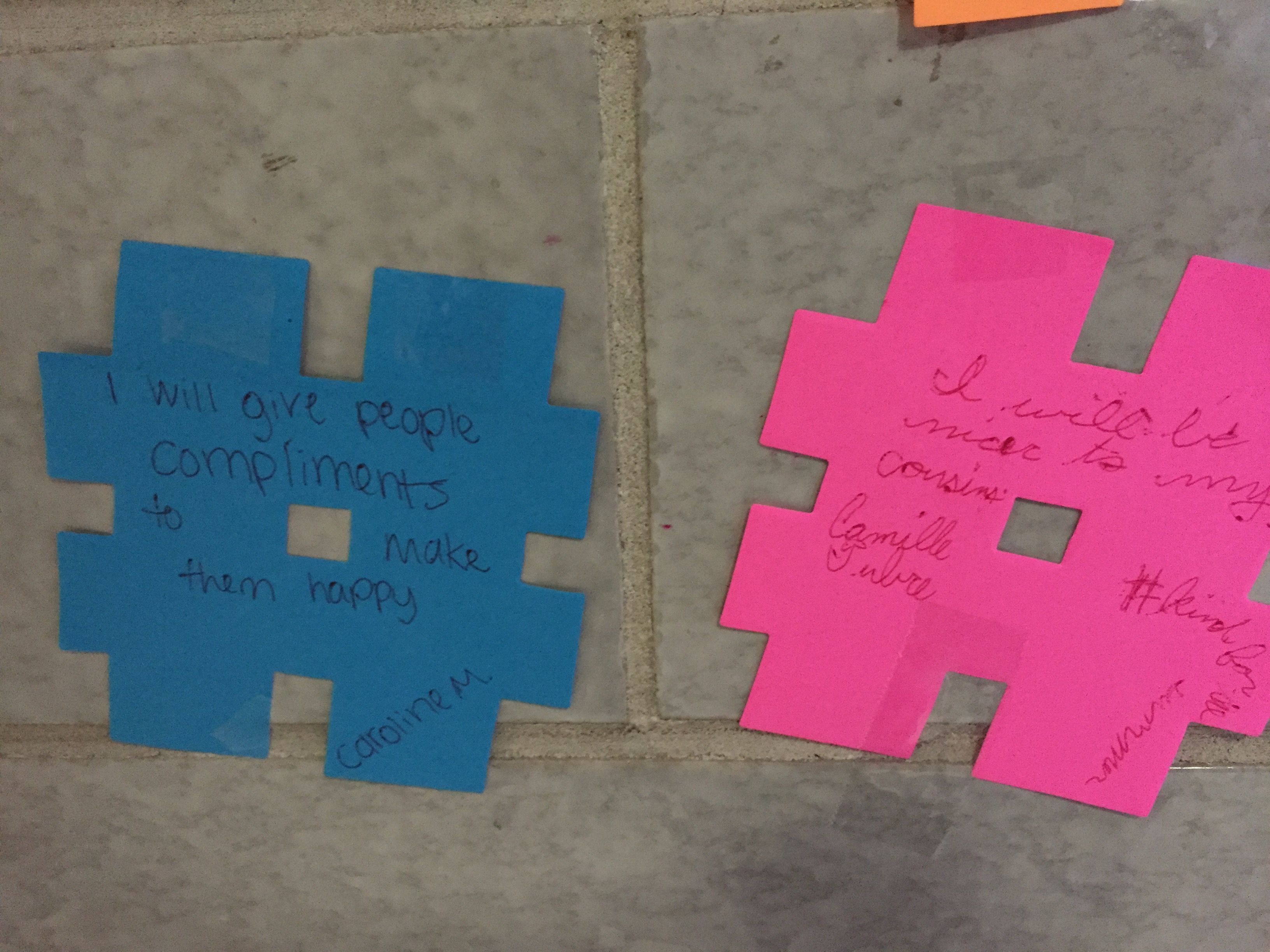 Eventually, I came up with a bulletin board idea in which students write the ways they will be kind over the summer on the hashtag post-its and post them on the wall under a sign that reads, “How will you be #kindforthesummer?”