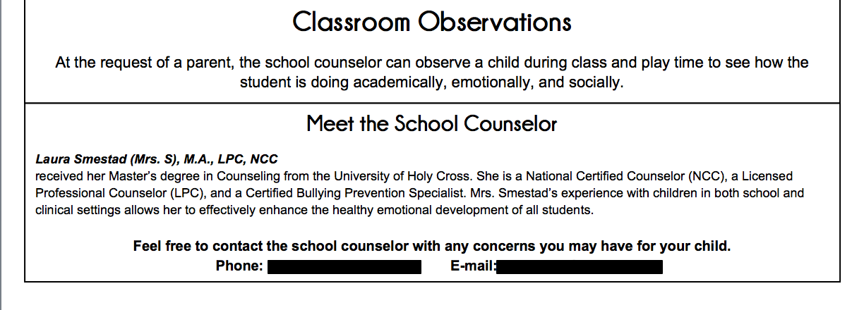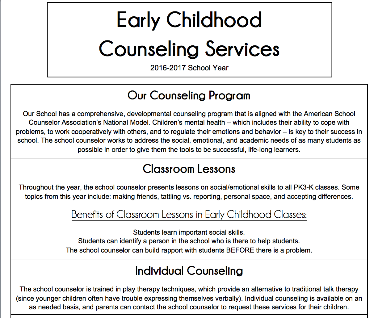 As I’ve mentioned before, every year, my school has a “Back to School Night,” where parents come to school to meet the teachers and learn about class expectations for the year. For last year’s Back to School Night, I distributed brochures about the counseling program, and the same brochure went out to the whole school. While this was a great way to get my message across, I wasn’t able to give as much detail as I wanted to because I was limited to one page for everything I do with the entire school.