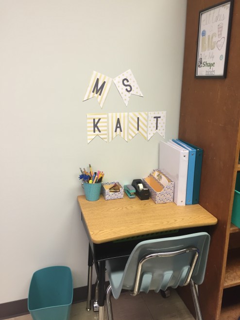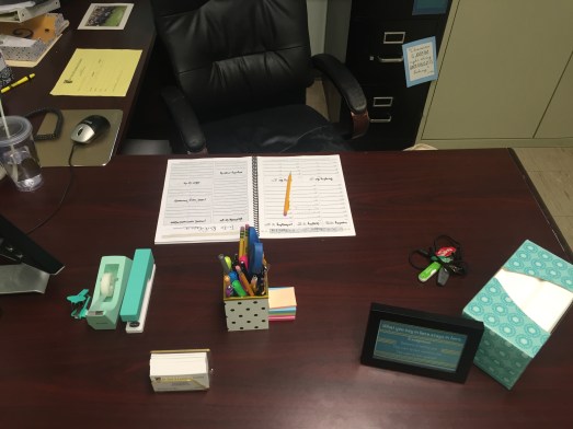 I started getting a little nervous when my furniture wasn’t in my office the week before school started, but it all worked out, and I am so happy with the way it turned out! Here is what my office looks like now: