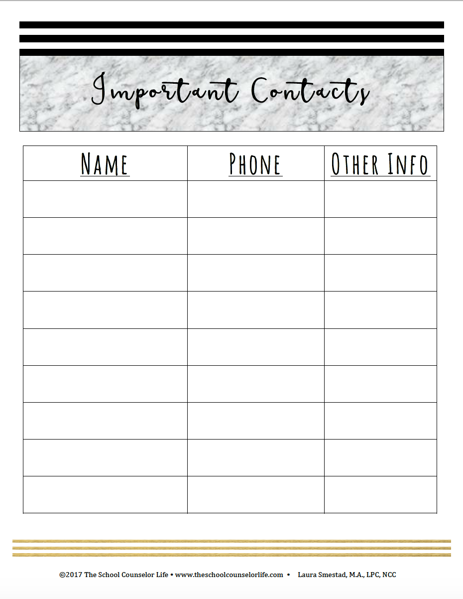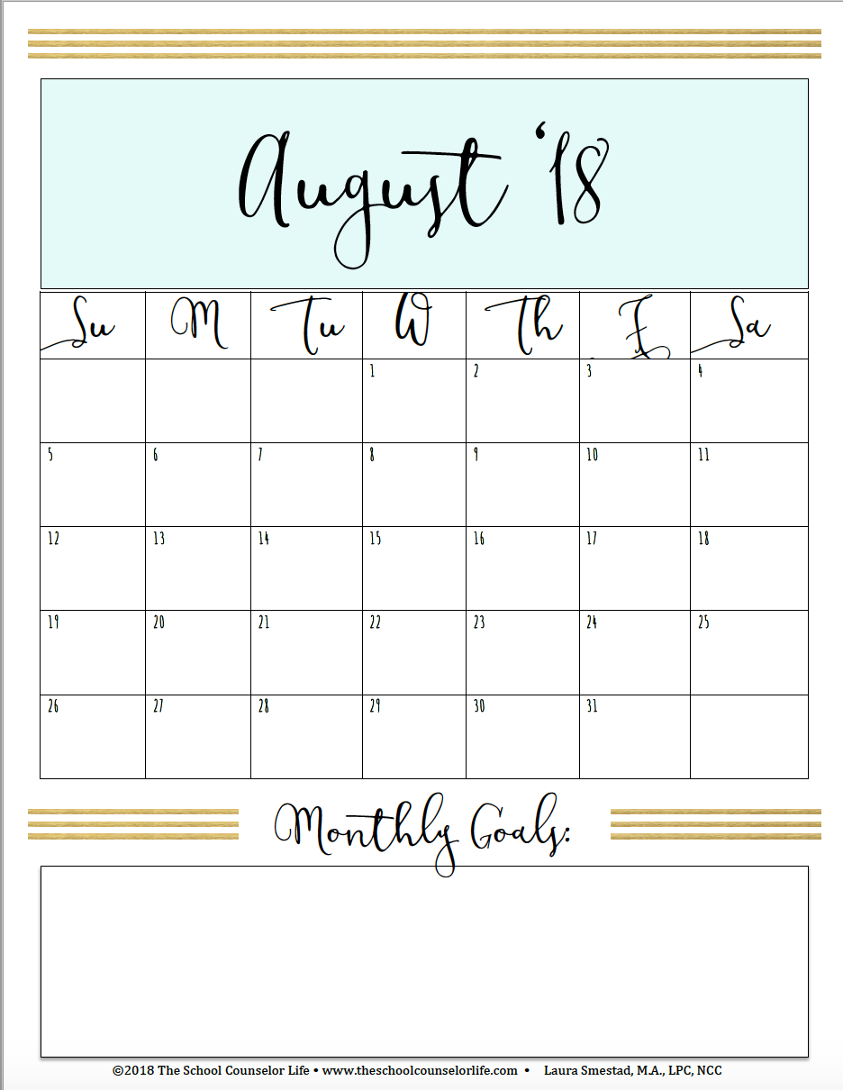 As in the past, I am more than happy to make a custom cover page with name and credentials for anyone who ‘likes’ The School Counselor Life on Facebook. Just e-mail theschoolcounselorlife@gmail.com after you’ve purchased your planner, and send the information you’d like included :))