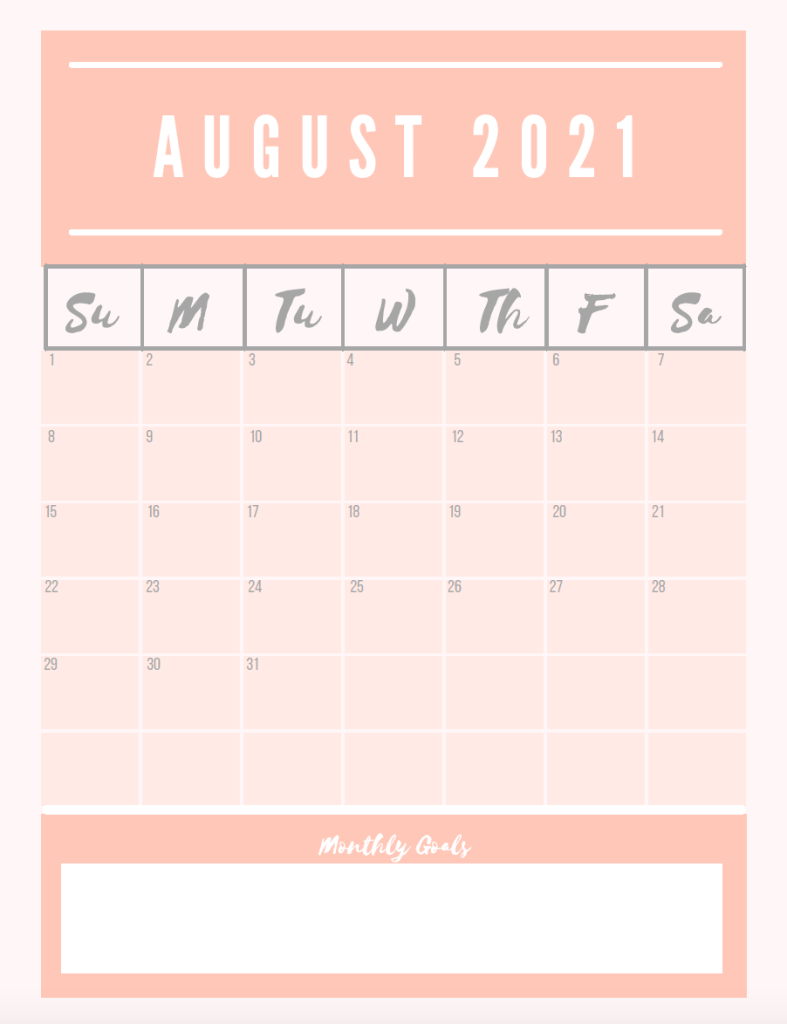 - Monthly Calendar Pages (August ’21-July ’22) with space to write monthly goals