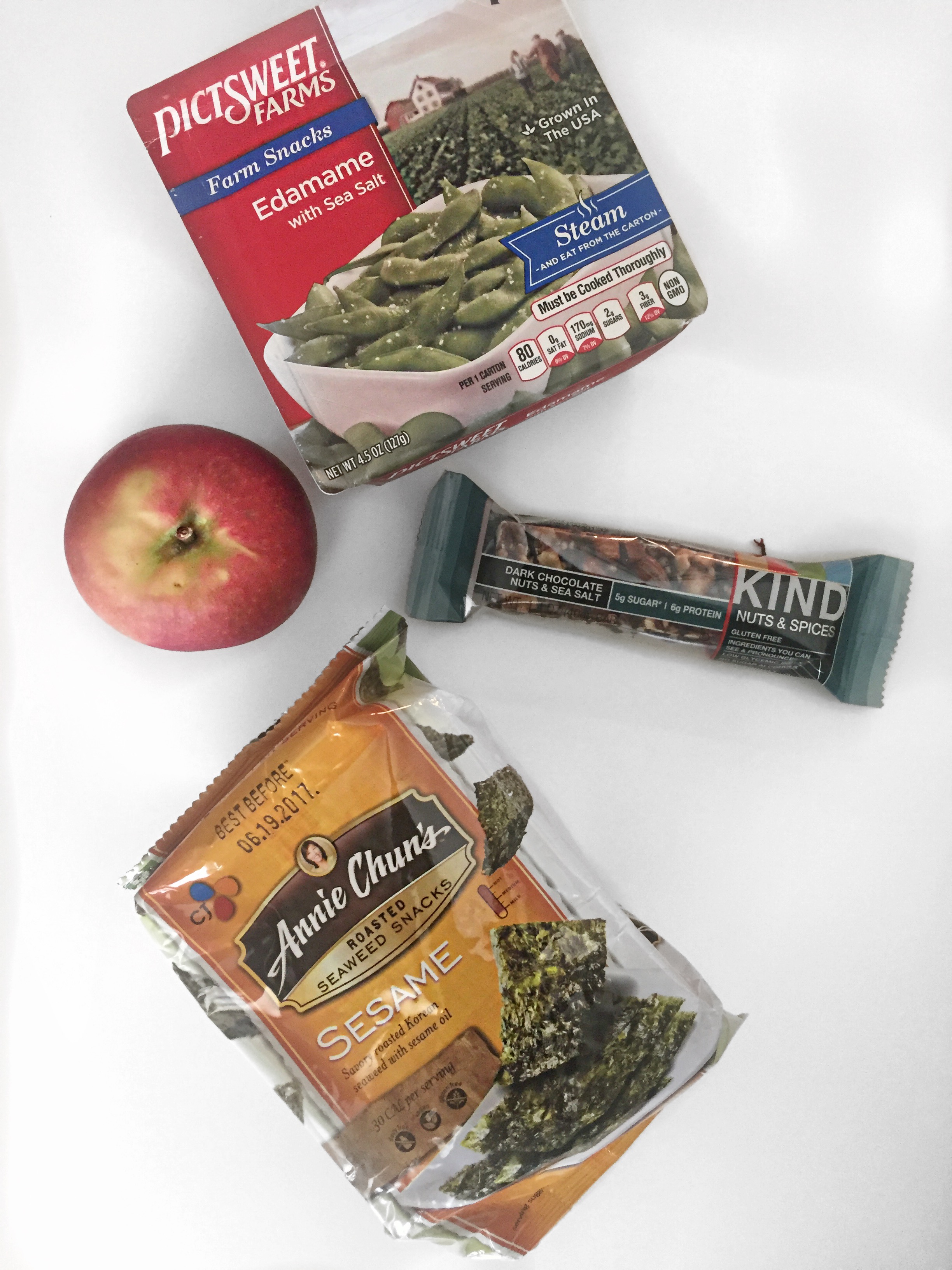 - Make sure I have healthy, easy to grab snacks available {I love fresh fruit, roasted seaweed snack, edamame, and Kind Bars —watch out for the ones with lots of sugar!}